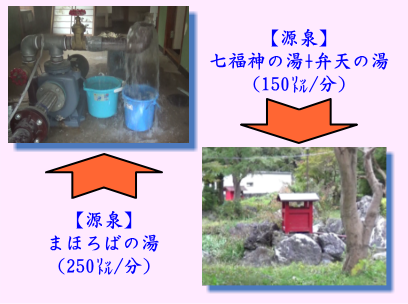 源泉名 七福神の湯+弁天の湯(150ℓ/分)、まほろばの湯(250ℓ/分)